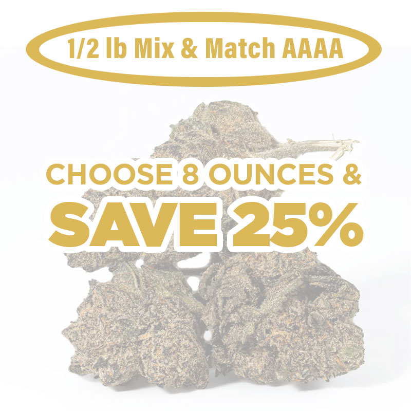 A little variety goes a long way. With the AAAA 1/2 LB Mix & Match, you get 8 different 28g strains for a total of 224 grams. It’s a great way to try multiple options without committing to a full 1/2 LB of just one.