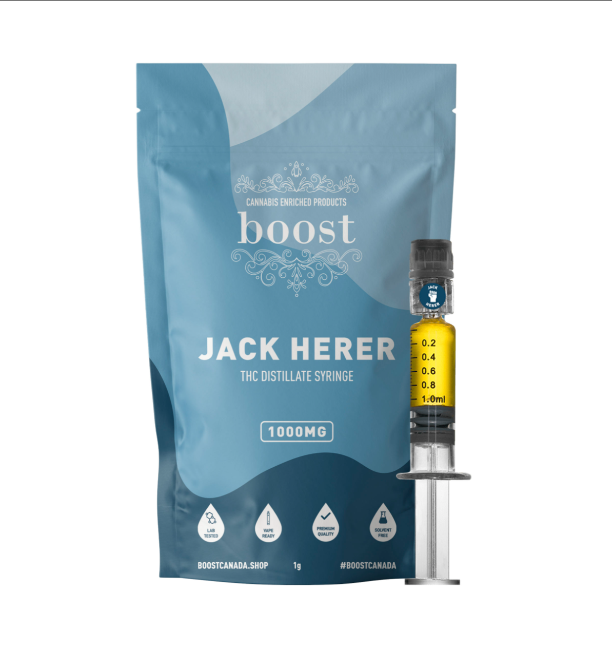 Boost THC Distillate Syringes are 1000mg Luer lock Glass syringes, containing high potency Delta 9 tetrahydrocannabinol.