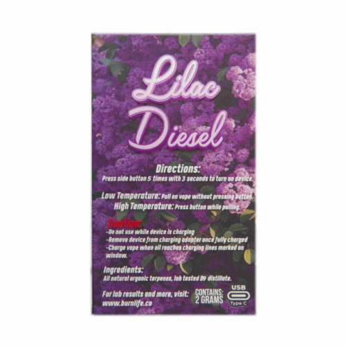 Burn Disposable Vape (2g) – Lilac Diesel (Sativa)