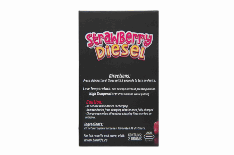 The Burn Disposable Vape is a 2g, high-capacity cannabis vaporizer that delivers potent, flavorful hits in a sleek, easy-to-use design. Crafted by Burn, a homegrown extract brand known for sourcing quality flower and terpene profiles from top growers in British Columbia, this disposable pen combines convenience with rich strain character.