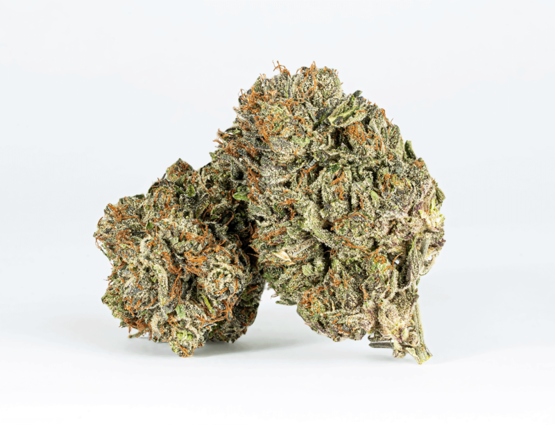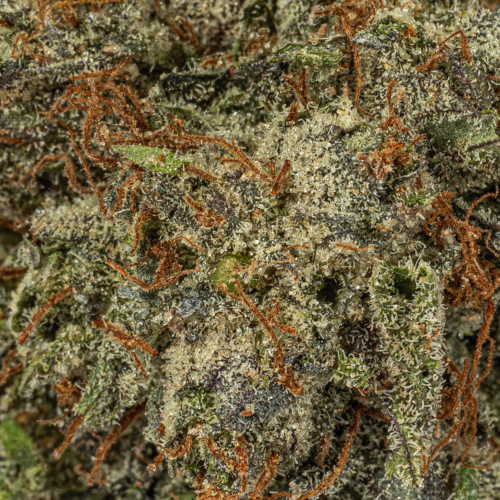 Famous for its gorgeous appearance and super potent high, Double Purple Afgooey is the perfect powerful indica for any discerning patient. This bud has eye-catching fat spade-shaped dark olive green nugs with deep purple undertones, thin orange hairs and a super frosty coating of chunky, deep purple-tinted white crystal trichomes topped with sweet, sticky resin. As each frosty little nugget is broken apart, aromas of sweet fruity grapes, pungent dank and heavily spicy hash are released, intensifying in potency as the nugs are burned away. The flavor is on the lighter side, with a spicy hash overtone accented by rich grape wine and a touch of earthiness. The Double Purple Afgooey high will wash over you quickly, taking on your mind with a quickly soaring lifted effect. You’ll feel giddy and giggly with a boost of sociability that has you outgoing and ready to get laughing or chatting with anyone around you. A super calming physical high comes next, sinking into your body and leaving you feeling totally relaxed from head to toe. With these effects and its high 26-28% average THC level, Double Purple Afgooey is said to be perfect for treating depression, insomnia, chronic stress, chronic pain, nausea and ADD or ADHD.