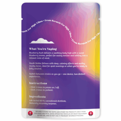 Step into deep relaxation with two of the most powerful indica strains ever created. The Blast Dual Strain 6g Disposable Vape Pen brings together Blueberry Kush and Death Bubba in a sleek, dual-chamber device engineered for heavy nighttime use and full-body calm.