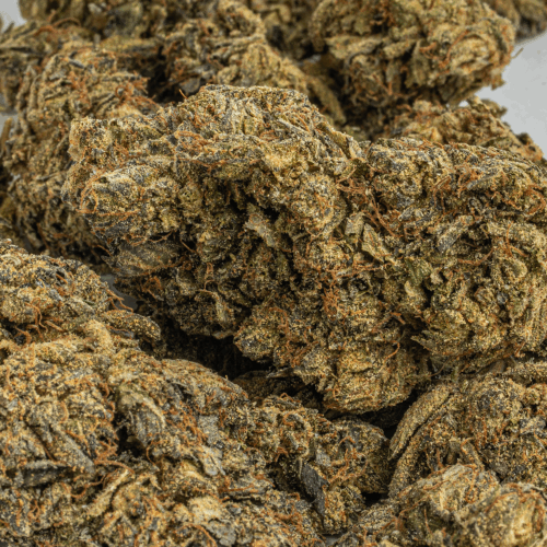 With these effects and its high 24-26% average THC level, Gas Leak is said to be perfect for treating those suffering from conditions such as chronic stress, muscle spasms or cramps, chronic pain, depression and migraines or headaches. This bud has rounded grape-shaped forest green nugs with dark furry amber hairs and a coating of thick frosty matching crystal trichomes.