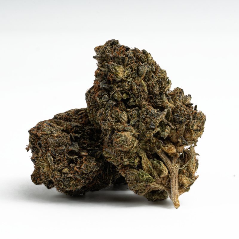 With these effects and its high 24-26% average THC level, Gas Leak is said to be perfect for treating those suffering from conditions such as chronic stress, muscle spasms or cramps, chronic pain, depression and migraines or headaches. This bud has rounded grape-shaped forest green nugs with dark furry amber hairs and a coating of thick frosty matching crystal trichomes.