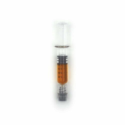 - Glass syringe filled with HTFSE cannabis distillate