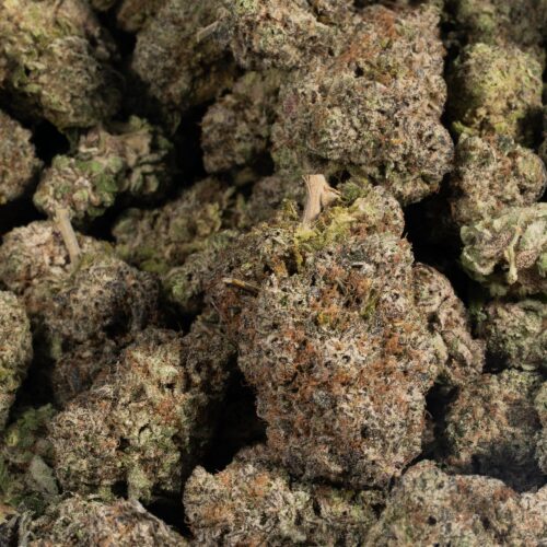 SFV OG, also known as “San Fernando Valley OG” to many members of the cannabis community, is a potent indica dominant (70% indica/30% sativa) phenotype of the OG Kush strain created by breeders at the infamous Cali Connection farms in the San Fernando Valley. This dank bud boasts a high THC level ranging from 24-26% and primarily indica effects. Users describe the SFV OG high as one with an almost immediate onset of relaxing and sedative effects that leave you feeling moderately couch locked with a light pressure in mind and body that is pain relieving. These effects are accompanied by a feeling of elevation and euphoria that is balanced by the deep indica effects. Due to these potent effects, SFV OG is an ideal strain for treating patients suffering from conditions such as mild to moderate cases of depression, chronic pain due to injury or illness, muscle spasms, and stress. SFV OG has an aroma of tangerines with a slight touch of diesel and a taste of citrusy pine with a sweet diesel aftertaste upon exhale. SFV OG buds have small dark army green nugs with olive green leaves, reddish brown hairs, and a fine layer of white trichomes and resin.