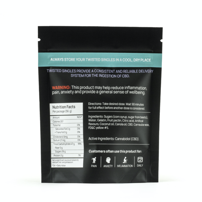 All chill, no buzz. New Sour Twisted Singles are made with the same CBD we use to infuse our CBD Jelly Bombs