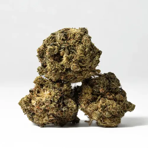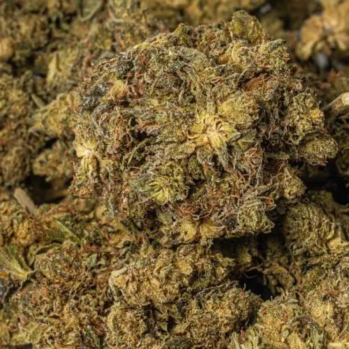 White Death is an indica dominant hybrid strain (70% indica/30% sativa) created through crossing the infamous White Widow X Death Bubba strains. Don’t let the name scare you – the only thing that White Death will kill is your aches and pains. The White Death high is one for the ages, with potent effects that will knock you flat out if you’re not careful with your dosage. It comes on with a creeping effect, slowly seeping its way into your mind before taking hold and lifting you to new heights of giddy and unfocused euphoria. As your mind fades into oblivion, your body will begin to settle into a relaxed and couch-locked state of pure bliss. This combination quickly turns sedative, leaving you dozing off for a long and peaceful sleep. With these heavy effects and its high 22-24% average THC level, White Death is often chosen to treat conditions such as depression, appetite loss or nausea, chronic stress, insomnia and chronic pain. This bud has a skunky and woody gassy flavor with an earthy and pungent aroma to match. White Death buds have tapered spade-shaped forest green nugs with lots of thin orange hairs and a coating of frosty chunky milky white crystal trichomes.